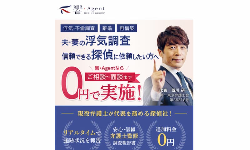評価 相談料金 無料 特徴 完全成功報酬・後払い制 また、完全成功報酬制・完全後払い制を採用しており、証拠が取れなければ料金は0円です。全国88拠点と20名以上の弁護士推奨による信頼のサポートで、初めての方でも安心してご相談いただけます。
