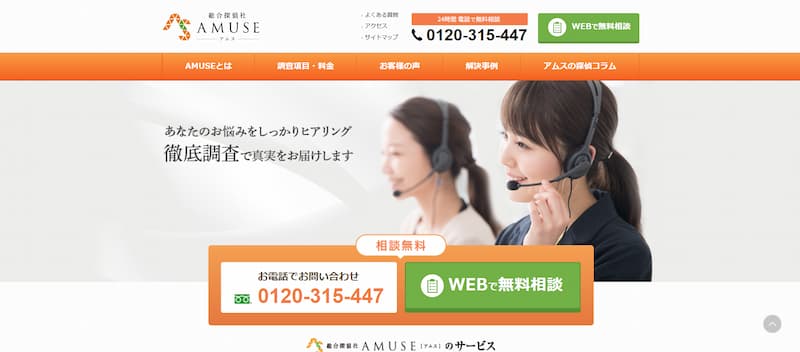 調査項目 | 浮気・不倫調査、家出・行方調査、結婚信用調査、素行調査、盗聴器発見調査、ストーカー・嫌がらせ調査、企業・個人信用調査 |