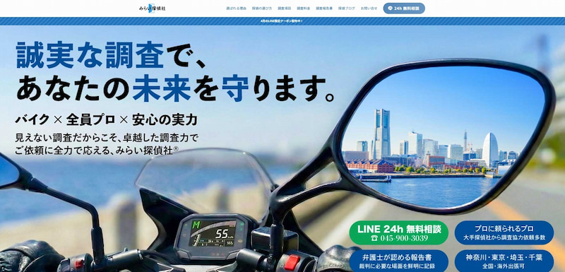 高難度の浮気調査専門のプロ集団。機動力の高いバイクでの尾行を積極的に取り入れており、高い調査成功率につながっています。