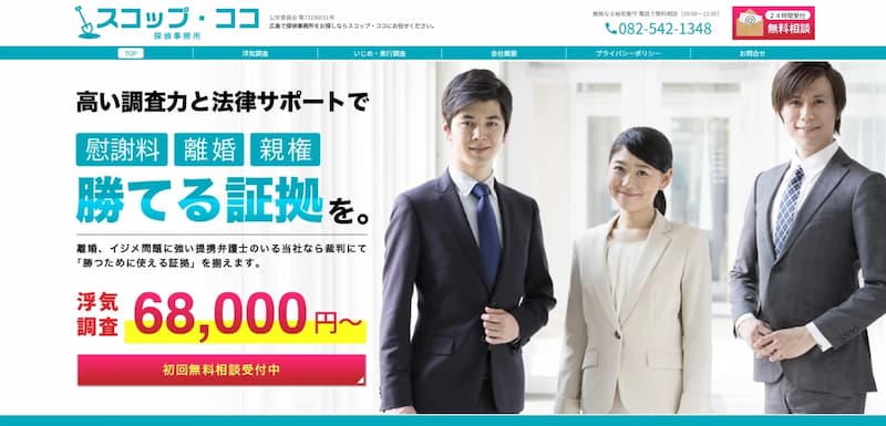 スコップ・ココは令和元年創業の広島に密着した探偵事務所で、調査員自らがヒアリングを行い最適なプランを提案することが特徴です。実際に現場で動く調査員が直接相談に応じるため、現場経験に基づいた的確な調査期間を設定でき、調査費用を最小限に抑えられます。
