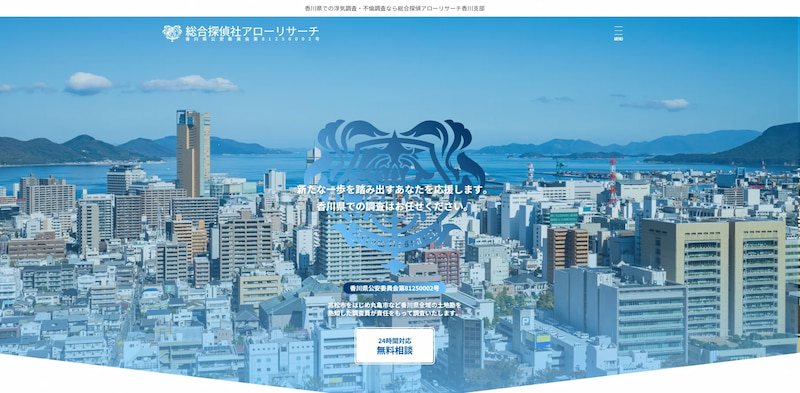 総合探偵社アローリサーチ香川支部は、高松市をはじめ丸亀市など香川県全域の土地勘を熟知した調査員が責任をもって調査する地域密着型の探偵社です。代表の入星直樹氏が率い、香川県の都市部から琴平町などの観光地、三豊市などの郊外まで幅広く対応しています。
