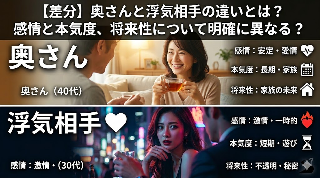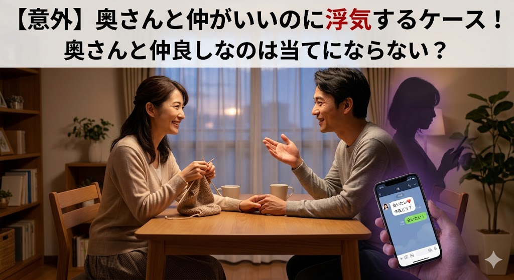 2026.04.20 【差分】奥さんと浮気相手の違いとは?感情と本気度、将来性について明確に異なる? 「奥さんとは続いているのに、なぜ浮気相手とも関係を持つのか」「自分はどちらの立場なのか」―こうした疑問や不安を抱えたまま、状況を整理できずに悩んでいる方は少なくありません。 一見すると似たような関係に見えても、奥さんと浮気相手では、感情の性質や関係の位置づけ、将来に対する考え方に明確な違いが存在する … 2026.04.20 【意外】奥さんと仲がいいのに浮気するケース!奥さんと仲良しなのには当てにならない? 「夫婦仲は良好なはずなのに、なぜか浮気が発覚する」―こうしたケースは決して珍しくありません。日常的に会話もあり、関係性も悪くないと感じているほど、「まさか」という油断が生まれやすいのも事実。 しかし実際には、仲がいいことと浮気しないことは必ずしも一致しません。今回は、奥さんと仲がいいにもかかわらず浮 … 2026.04.17 【心配】結婚式での浮気率が高いと言われる理由!浮気や不倫につながりやすい? 結婚式という華やかな場において、「浮気が起きやすい」「実は浮気率が高いのではないか」といった声を耳にすることがあります。実態はどうなのでしょうか? 実際には、結婚式という非日常的な空間ならではの環境要因が重なり、関係性が一時的に変化しやすい場面があるのは事実。再会による距離の急接近、アルコールによる … 2026.04.17 【一撃】浮気してる人が焦る言葉!相手の勝手な想像力を働かせることがポイント? 浮気の疑いがあるとき、直接問い詰めるべきか、それとも様子を見るべきか悩む方は少なくありません。実際、強く追及するほど相手が警戒し、証拠がつかみにくくなるケースもあります。一方で、何気ない一言によって相手の心理が揺れ、思わぬ反応が見えることもあります。 今回は、浮気している人が思わず焦る言葉という観点 … 2026.04.15 【限界】夫の嘘に疲れた…旦那を信用できないことに疲れた人が考えるべきこととは 夫の言動に違和感を覚えながらも、「考えすぎかもしれない」「証拠もないのに疑うのは良くない」と自分に言い聞かせてきた –そんな状態が続くと、次第に心はすり減っていきます。 気づけば、相手を信じたい気持ちと疑ってしまう現実の間で揺れ続け、もう疲れたと限界を感じてしまうのも無理はないこと。 今回は、夫の嘘 … 2026.04.14 【明確】依頼するのはやめたほうがいい探偵の特徴とは!口コミは当てにならない? 探偵への依頼を検討していると、「どこに頼めばいいのか分からない…」「失敗したくない」という不安を感じる方は少なくないでしょう。実際、調査の質や対応力は業者ごとに大きく異なり、選び方を誤ると「十分な証拠が取れなかった」「想定外の費用がかかった」といったトラブルにつながるケースも数多く存在。 一方で、イ … 2026.04.14 【闇】浮気は妊娠しやすい?一回の浮気でも起きるリスクと見落とされがちな現実 「一回だけなら大丈夫」 「きちんと避妊しているから問題ないはず」 そう思いたい気持ちは自然ですが、実際にはたった一度の関係でも妊娠に至るケースは十分に起こり得るものです。また、浮気は妊娠しやすいと言われることも。 特に浮気のケースでは、関係の詳細やタイミングが曖昧なまま、「本当に一回なのか」「説明に … 2026.04.13 【連絡なし】旦那が飲み会で帰ってこない!心配を通り越して離婚問題へ? 旦那が「飲み会に行く」と言ったまま連絡が取れず、そのまま帰ってこない―。最初は遅くなるだけかもしれないと思っていても、時間が経つにつれて不安は大きくなり、「何かあったのでは」「もしかして浮気では」といった疑念に変わっていくケースは多く存在します。 実際、このようなケースは単なる飲み会の延長で済む場合 … 2026.04.09 【危険】心の浮気は職場で起きやすい?注意するべきサインと境界線を徹底解説 職場という日常的に長い時間を共にする環境では、気づかないうちに距離が縮まりやすく、心の浮気と呼ばれる状態に発展するケースも少なくありません。本人に自覚がないまま関係が深まっていくことも多く、外から見ても判断しづらいのが特徴。 一方で、「どこからが浮気なのか分からない」「これはただの仕事上の関係ではな … 2026.04.07 【遅い】妻の飲み会は何時まで許せる?日付変わり3時帰り…旦那が不機嫌の理由とは 妻の飲み会が遅くなること自体は珍しくありませんが、帰宅が日付をまたいで深夜、さらには3時頃ともなると、さすがに気になるという方も多いのではないでしょうか。「仕事の付き合いだから仕方ない」と頭では理解していても、連絡の頻度や内容、帰宅後の様子によっては、モヤモヤや不信感が残ってしまうこともあります。 … 12345›»