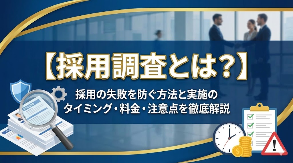 2025.12.28 前職調査はどこまで?人事担当者が知るべき範囲と注意点を解説 採用活動において、ミスマッチを防ぎ、コンプライアンスを遵守することは人事担当者にとって非常に重要な課題です。 本記事では、そのために不可欠な「前職調査」について、人事担当者が知っておくべき範囲と注意点を詳細に解説します。調査可能な範囲の境界線、法的な観点からの注意、そして候補者との信頼関係を損なわず … 2025.12.04 採用調査とは?目的別の手法と費用、おすすめサービスを解説 この記事では、採用活動におけるミスマッチを防ぎ、採用の質を高めるための「採用調査」について包括的に解説します。採用調査の基本的な定義から、なぜ現代の企業にとって不可欠なのか、その具体的なメリットを深掘りします。さらに、バックグラウンドチェックやリファレンスチェックといった類似サービスとの違いを明確に … 2025.11.06 バックグラウンドチェックで何が見れる?どうやって調べるか今すぐ確認する方法! 「バックグラウンドチェックってどうやって調べるんだろう…」「自分の情報がどこまで見られるのか不安だな…」と感じたことはありませんか。就職活動や新しい取引先との契約を考えていると、個人情報がどのように扱われるのか気になる方も多いでしょう。バックグラウンドチェックは、あなたの経歴や信用情報を確認する手段 … 2025.11.05 採用時の身元調査は必要?調査方法と費用を徹底解説!【保存版】 「採用時に身元調査を行いたいけれど、どのように進めればいいのか不安…」と感じる方も多いのではないでしょうか。また、「調査にかかる費用や方法について詳しく知りたい」と思っている方もいるかもしれません。採用活動において、応募者の身元を確認することは非常に重要です。しかし、どのように調査を進めるべきか、ど … 2025.11.04 【前職調査の真実】中途採用での注意点と法的リスクとは? 「前職調査ってどこまで調べられるのだろう…」と不安になる方もいるでしょう。中途採用の面接を控えている場合、前職の評価やトラブルがどのように影響するのか心配になることもあるかもしれません。企業がどこまで調査を行うのか、そしてその結果が採用にどのように影響するのか、気になるところです。 前職調査に関する … 2025.11.04 【採用調査】どこまでが合法なのか?成功するための完全ガイド! 「採用調査って、どこまで調べていいのだろうか…」と悩む方もいるでしょう。「合法的に調査を進めたいけれど、何が許されているのか不安…」と心配になることもありますよね。採用調査は企業にとって重要なプロセスですが、法律や倫理の問題に直面することも少なくありません。 採用調査を成功させるためには、まずは合法 … 2025.11.03 同意なしのバックグラウンドチェックは違法?注意すべき事実を公開 「同意なしでバックグラウンドチェックを行っても大丈夫かな…」と不安に思う方もいるでしょう。また、「同意なしで行った場合、法律に触れるのでは?」と心配になることもあるかもしれません。バックグラウンドチェックは、採用や取引の際に相手の信頼性を確認するために行われることが多いですが、同意なしで実施すること … 2025.11.03 バックグラウンドチェックの実施方法と費用を徹底検証【保存版】 「採用候補者の経歴に嘘はないか、しっかり見極めたいけど、どう調査すればいいのだろう…」「バックグラウンドチェックを実施したいけど、費用や法律的な問題が心配…」採用担当者であれば、このような不安を感じる場面もあるでしょう。 採用後のミスマッチや思わぬトラブルを防ぐためにも、正しい知識を持って調査を進め … 2025.11.03 【採用調査】違法にならないための具体的な条件と注意点 「採用調査を行いたいけれど、法律に触れることはないだろうか…」と不安に思う方もいるでしょう。採用調査が違法になるケースがあると聞くと、「自社の調査方法は問題ないのだろうか?」と心配になることもあるかもしれません。法律に触れずに適切な採用調査を行うためには、どのような条件や注意点があるのかを知っておく … 2025.11.02 【採用調査とは?】採用の失敗を防ぐ方法と実施のタイミング・料金・注意点を徹底解説 「採用した社員が想像と違った」「経歴詐称があった」──そんな採用トラブルを未然に防ぐために、多くの企業で導入が進んでいるのが採用調査(バックグラウンドチェック)です。 採用調査を行うことで、面接では分からない応募者の実態を客観的に確認でき、採用のミスマッチや企業リスクを大幅に減らすことができます。 … 12345›»